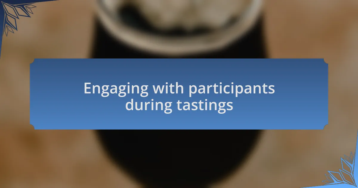 Engaging with participants during tastings can transform the overall experience from simply tasting beers to building a community. When I first participated in a virtual tasting, I made sure to actively encourage everyone to share their impressions in real time. I remember asking participants about their favorite flavors and inviting them to compare notes on the unique characteristics of each beer. Their insights not only enriched the discussion but also made me feel more connected to the entire group. Have you ever been surprised by the different perspectives people bring to a shared experience?